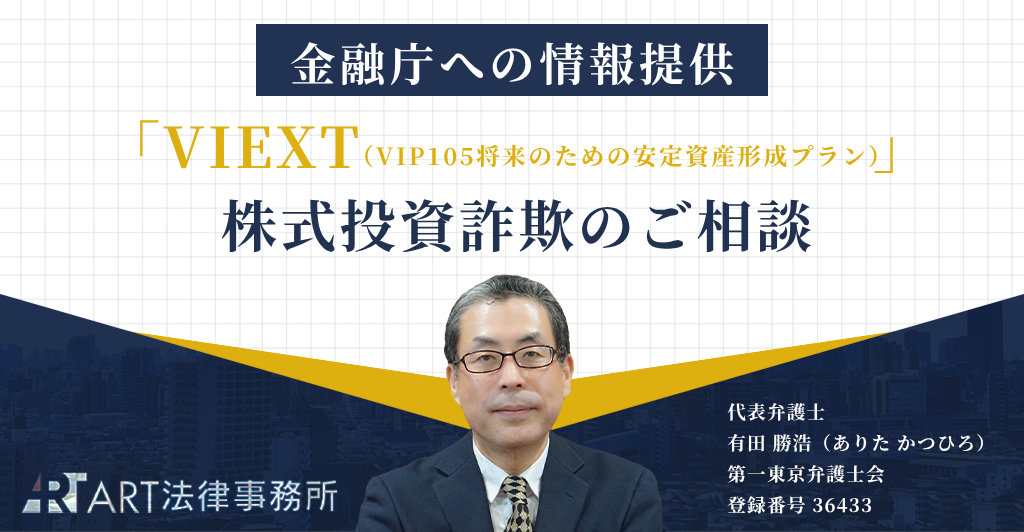 本記事は当事務所へ寄せられた、VIEXT(VIP105将来のための安定資産形成プラン)の相談内容をもとに、関係機関へ情報提供を行った事実をお知らせするものです。